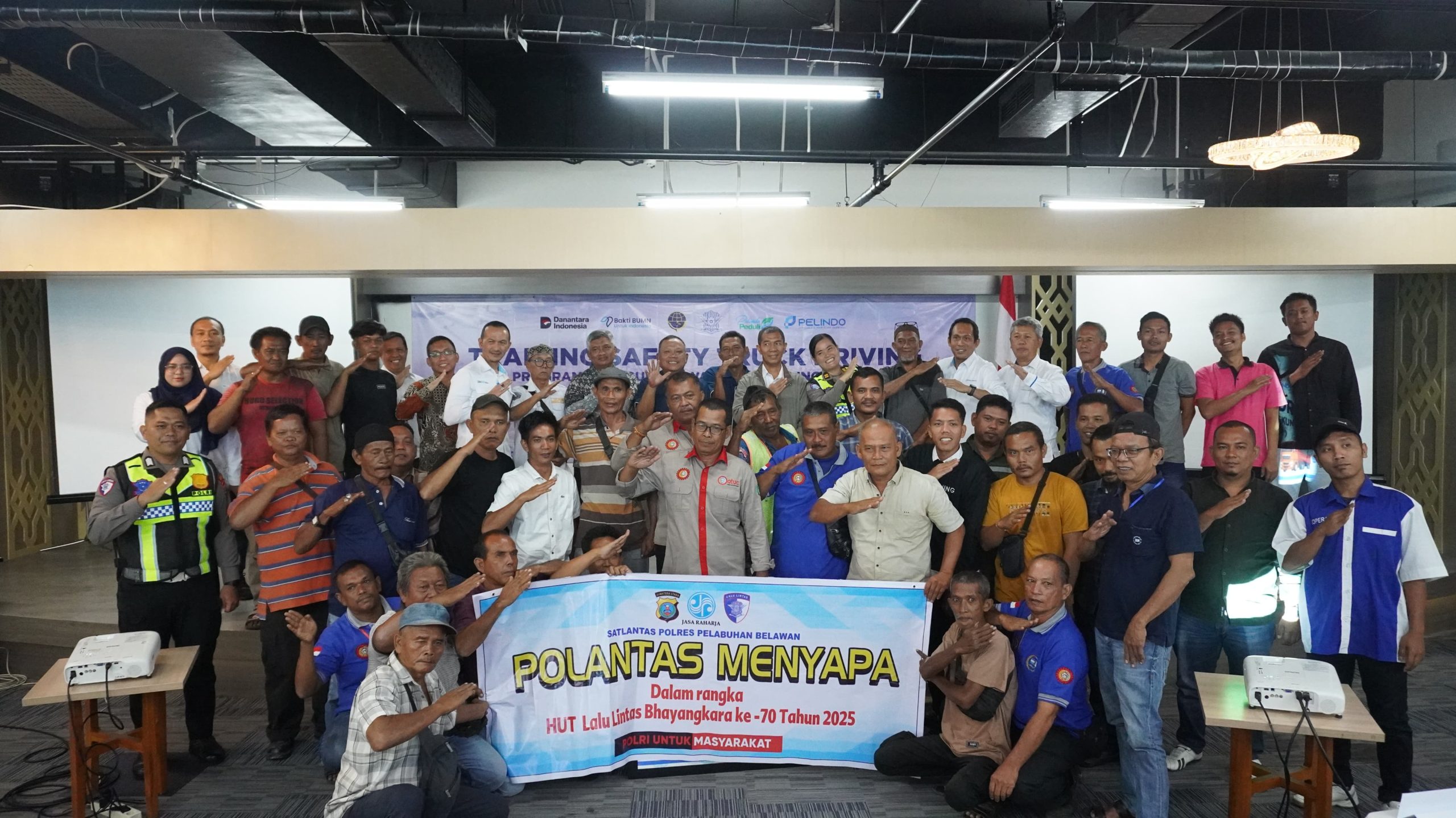 BELAWAN, SUMUTCENTER.COM — 8 – 12 September 2025 – PT Pelabuhan Indonesia (Persero) atau Pelindo Regional 1 bekerja sama dengan Kepolisian Pelabuhan Belawan melalui program Tanggung Jawab Sosial dan Lingkungan (TJSL) menyelenggarakan Training Safety Truck Driving di Terminal Bandar Deli, Belawan. Kegiatan yang berlangsung selama lima hari ini diikuti oleh 300 peserta yang dibagi ke dalam lima batch pelatihan.